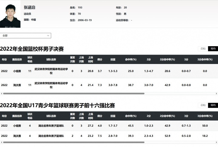 张涵泊篮协官网比赛记录图