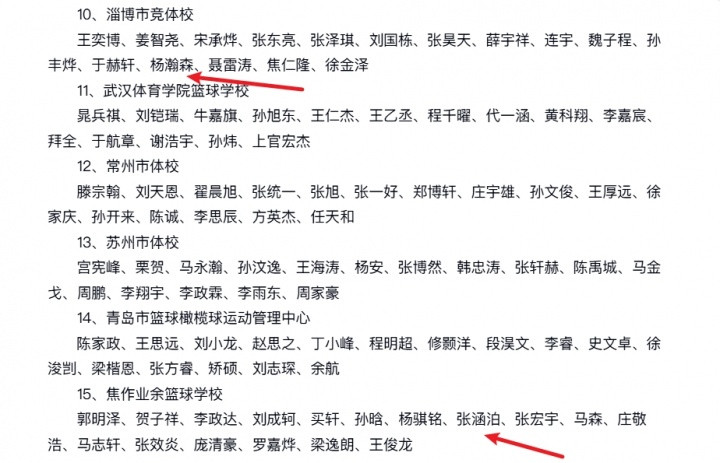 其中,焦作业余篮校名单中,张涵泊赫然在列,而淄博市竞体校中,杨瀚森的名字更是引人注目。