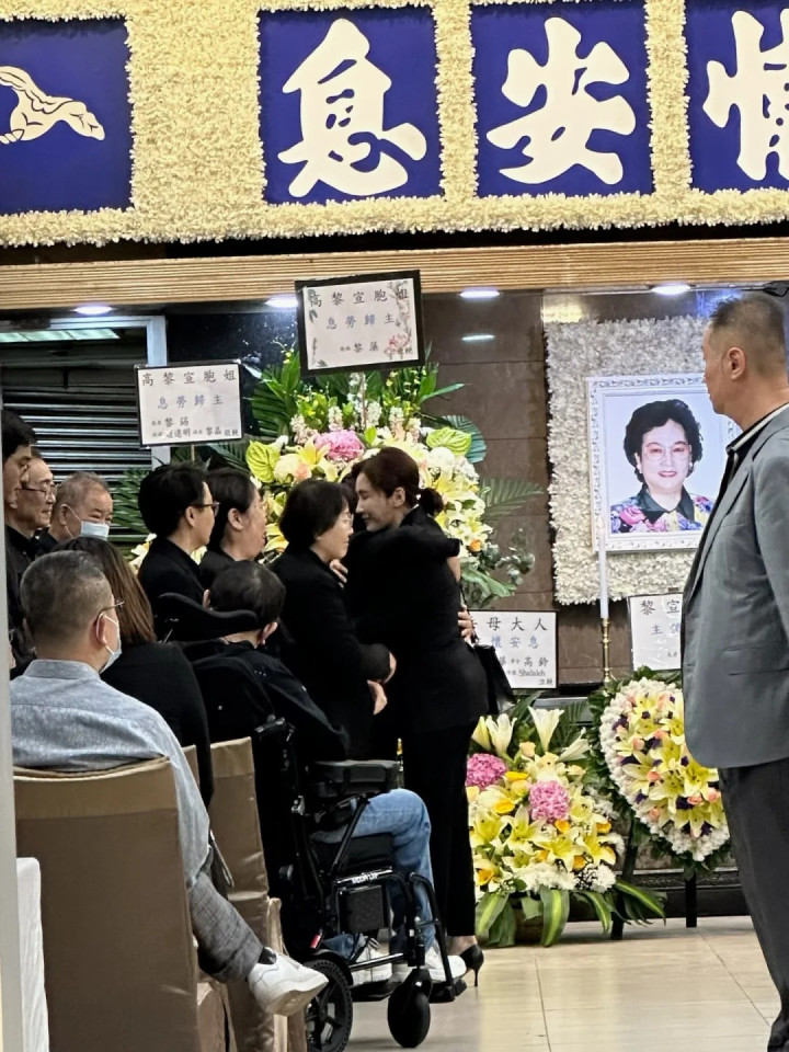 据港媒报道,黎姿一家现身灵堂送别姑妈,黎姿一身黑衣在灵堂和表姐拥抱,她的身旁是坐着轮椅的弟弟黎婴。