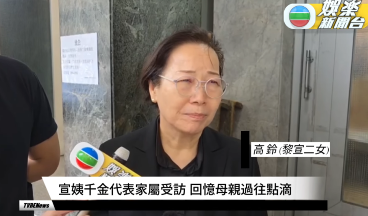 黎宣的四个女儿及丈夫在灵堂送别,女儿受访透露,黎宣因为肺炎入院,一周后因器官衰竭去世,她为人俭朴爱护家人,女儿的衣服都是她亲手缝制,她和蔼可亲非常敬业,无论什么角色,都熟读剧本和台词,每次在街上被人认出,总是特别高兴。