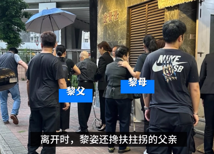 而黎姿的父母也低调现身,离开时,黎姿还搀扶拄拐的父亲。