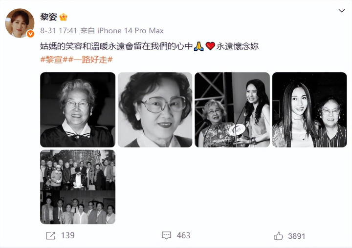 据悉,黎宣的父亲是“香港电影之父”黎民伟,祖孙三代都是电影人,黎宣入行多年,在上百部影视剧出演妈妈、婆婆等角色,深受大家喜欢。代表作包括《真情》《大时代》等,她最后一部作品是2010年拍摄的电视剧《Only You 只有您》。