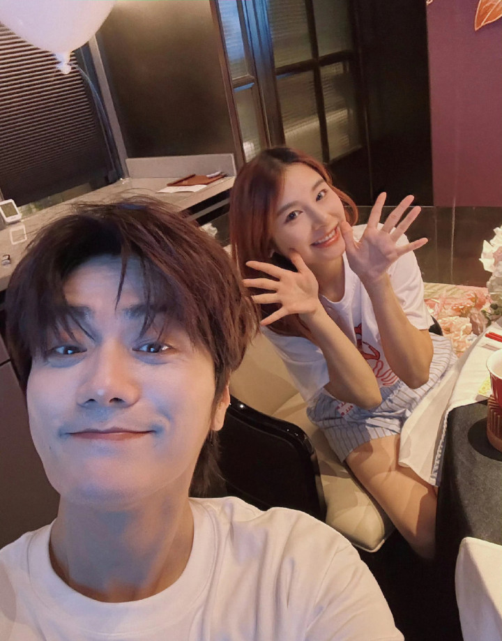 陆虎和陈曌旭穿的也很随意,俩人都是穿的居家服,白色的短袖有种情侣装的既视感,也显得俩人很年轻,有种二十多岁的小年轻谈恋爱的感觉。