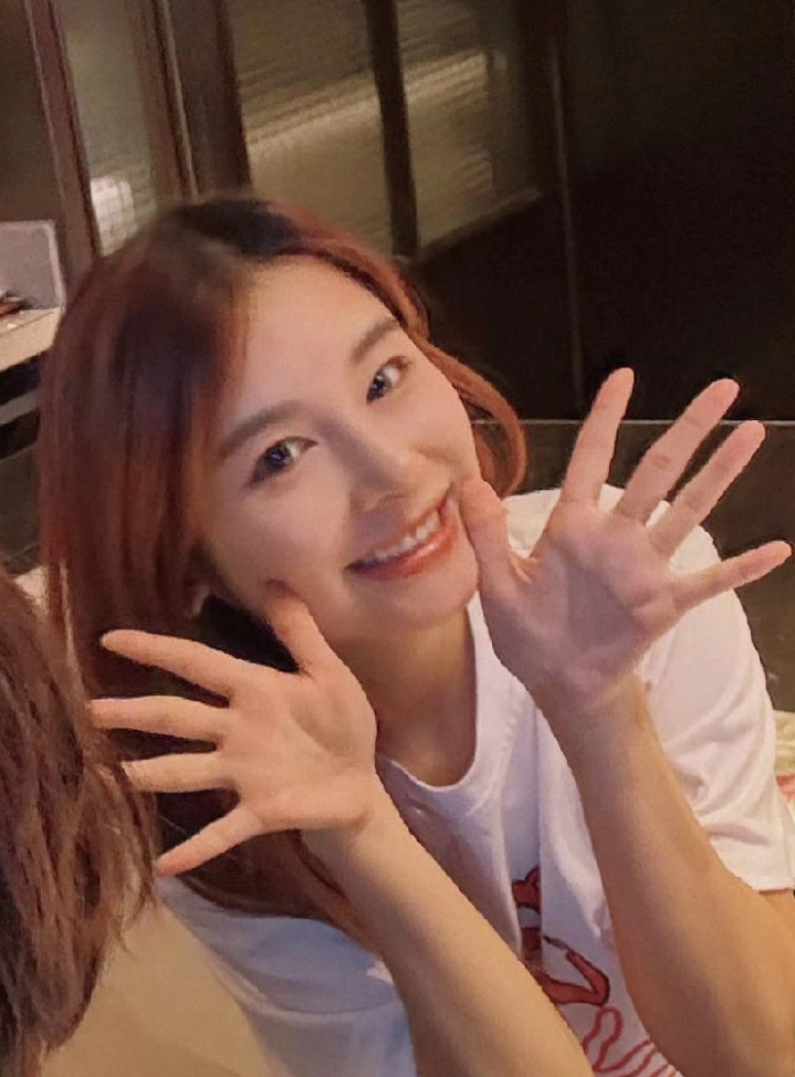 只化了淡妆的陈曌旭看着奶乖奶乖的,很是清纯,像个大学生一样,特别是她对着镜头伸手开心微笑的表情,真的很少女,也能让人感觉到她是真心的幸福和开心。